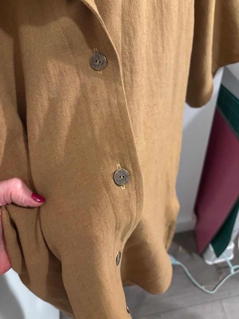 I was two small steps from finishing when my husband and I left for a week up north with friends. The morning of my birthday, after this distance-imposed pause, I made the buttonholes and sewed on the buttons I’d preselected from my collection. I’d saved them, too, for the right project, and this was it.
