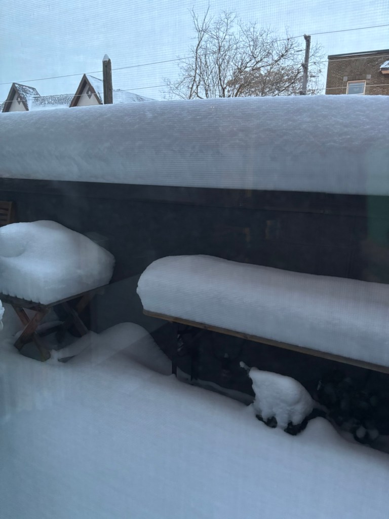 I’m starting off strong here and staying true to my word by making today’s entry in the snow/prison diary in which I plan to document this current period of winter confinement. While I hope that this will be a two-day thing, I suspect it’ll be a significantly longer-term project. Watch me curse myself weeks from now when these posts devolve into some version of “yep, still stuck inside” and the wall above my desk is full of tally marks I’ve scratched there in groups of five.