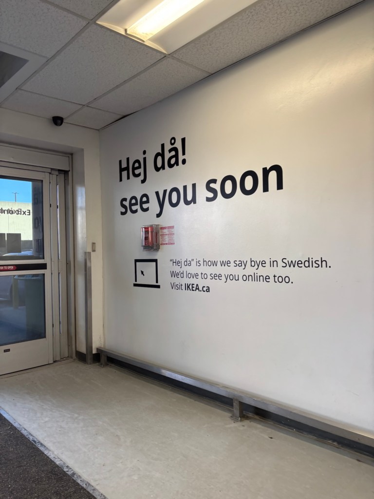 Lest you think that you’re in for a description of some exciting adventure to places previously unexplored, I might as well say right off the bat that this was not that at all. Quite the opposite, in fact. Indeed, it wouldn’t be worth writing about had the context been different and were I not so skilled at grasping for “meaning” in almost everything I do or experience—a superpower I wish I hadn’t had occasion to acquire. It probably isn’t worth writing about at all, but here we are. This was merely an errands-running mission with some thrifting thrown in because my husband and I are drawn to second-hand stores like moths to animal-based fibres. Our primary destination, besides a grocery outlet we make a habit of visiting when we’re in the area—we both love a deal and my husband is a sucker for a novelty food item—was IKEA. Always fun, right?